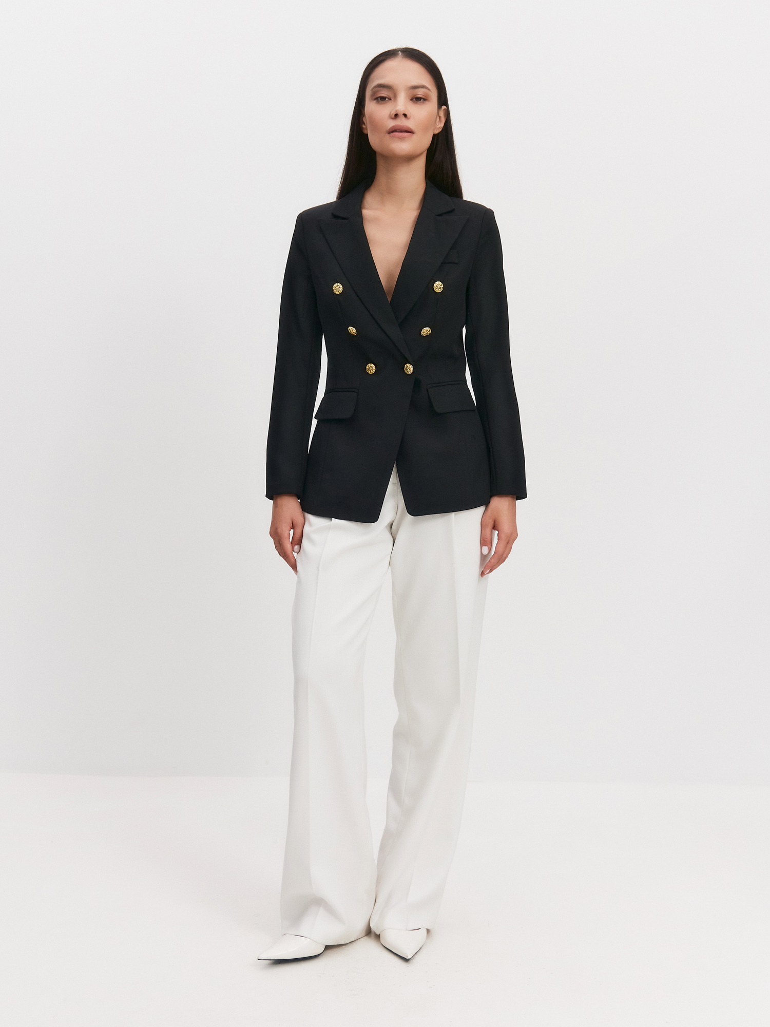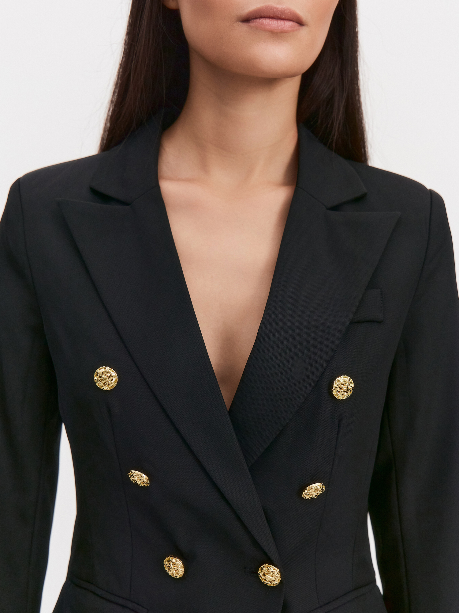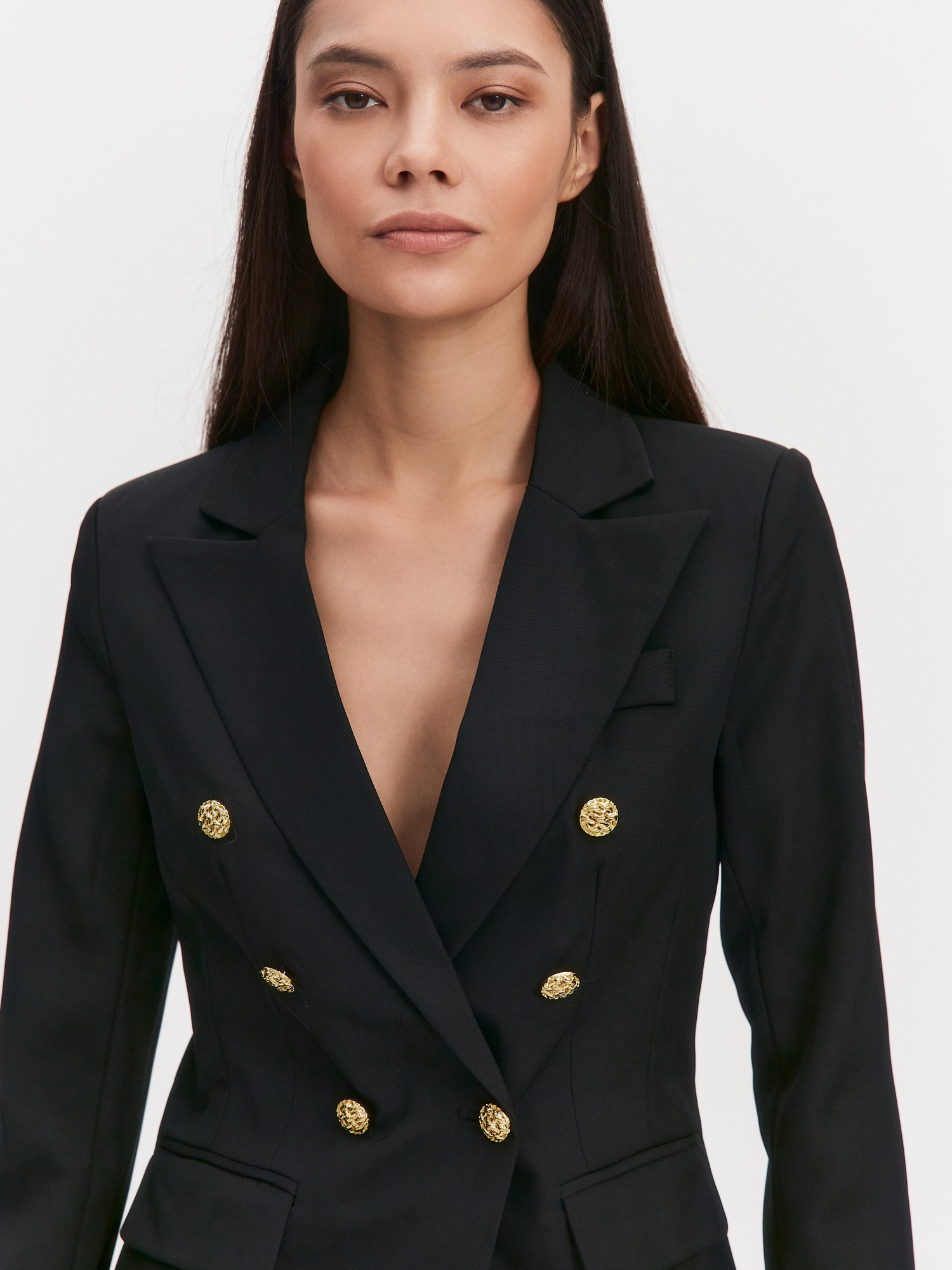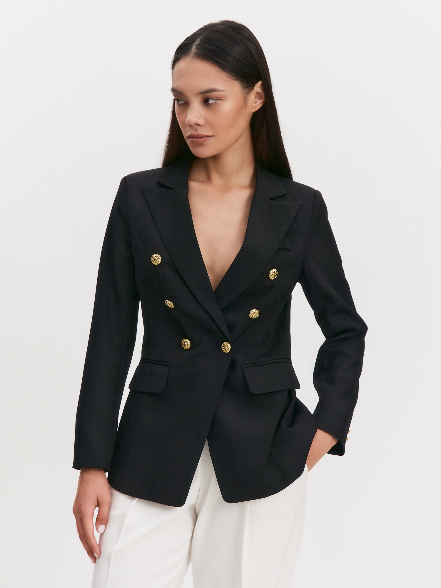 Блейзер приталенного силуэта на пуговицах с длинным рукавом и лацканами. Универсальная модель для любых выходов.